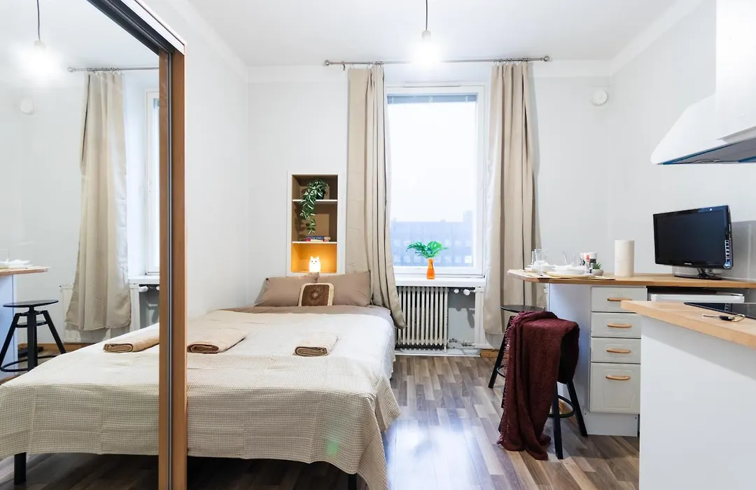 Helsinki Garı tren istasyonu ve Linnanmäki Eğlence Parkı daireye 10 ve 25 dakikalık yürüme mesafesindedir. Daire, Kamppi metro istasyonuna 5 dakika ve Luteran Katedrali'a 20 dakika yürüme mesafesindedir. Suşi bar Take Sushi, daireden 100 metre mesafede bulunmaktadır. Helsinki Olimpiyat Stadyumu de kısa bir sürüş mesafesindedir.